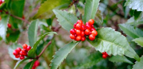 芬陀院で見頃を迎えていた”千両”。千両は枝の先端にたくさんの赤い実がひとかたまりについています。 一番最後に載せているのは同じく芬陀院の”南天” 南天は