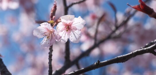 滋賀県の現場にて。 山にはまだ雪が残る中、現場の近くでは桜が咲き始めていました。 まだ少し肌寒いですが、季節が少しずつ春に向かっているのを感じます。 現場の合間に思わず撮った一枚🌸